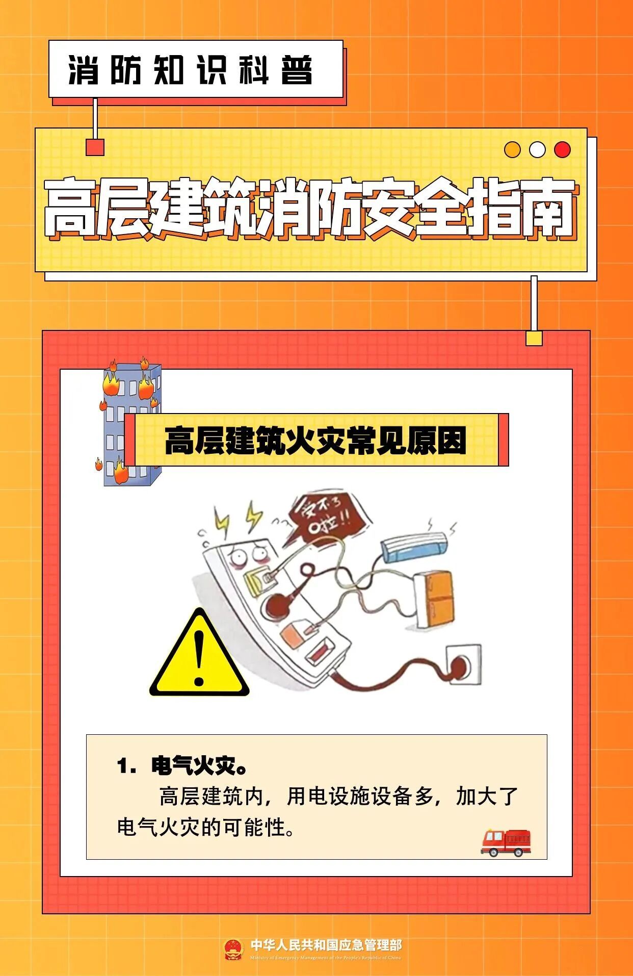 11月26日,香港新界大埔屋邨宏福苑多栋住宅楼发生火灾,造成重大人员伤亡,再次敲响消防安全的警钟。眼下正值冬季,天干物燥,用火用电用气量增加,火灾隐患增多,消防安全不容小觑。什么电器会引起高层火灾?高层建筑一旦着火我们该怎么逃生?这份高层安全逃生指南请注意查收!图片来源:中华人民共和国应急管理部